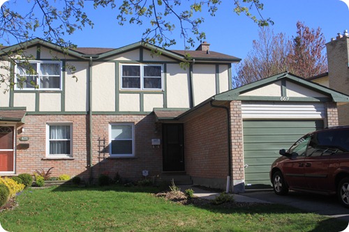 It’s a beauty, I tell you! We took possession on September 2. The past two and a half weeks have consisted mainly of one thing – demolition. But before I get into any of that, I’d like to show you around a little! As you can see from the outside, it is a ranch style modular home, complete with awesome bay windows of the ‘80s. Gotta love that! It is also a “wonderful” light peach color. It also comes complete with old curling shingles and a nifty wheelchair ramp. Needless to say, we were a little underwhelmed when we first pulled up to view it.